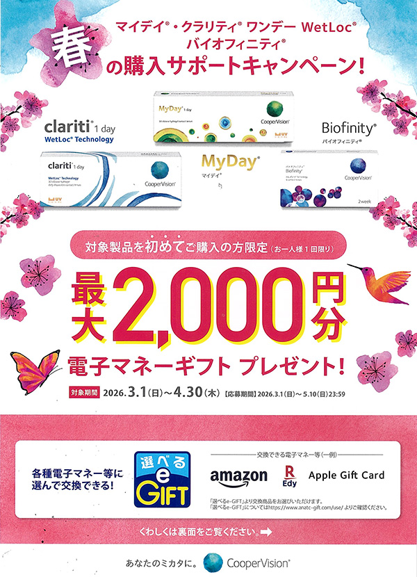 より快適に安全なレンズをお求めやすくするために特典を準備しています。ご利用ください。